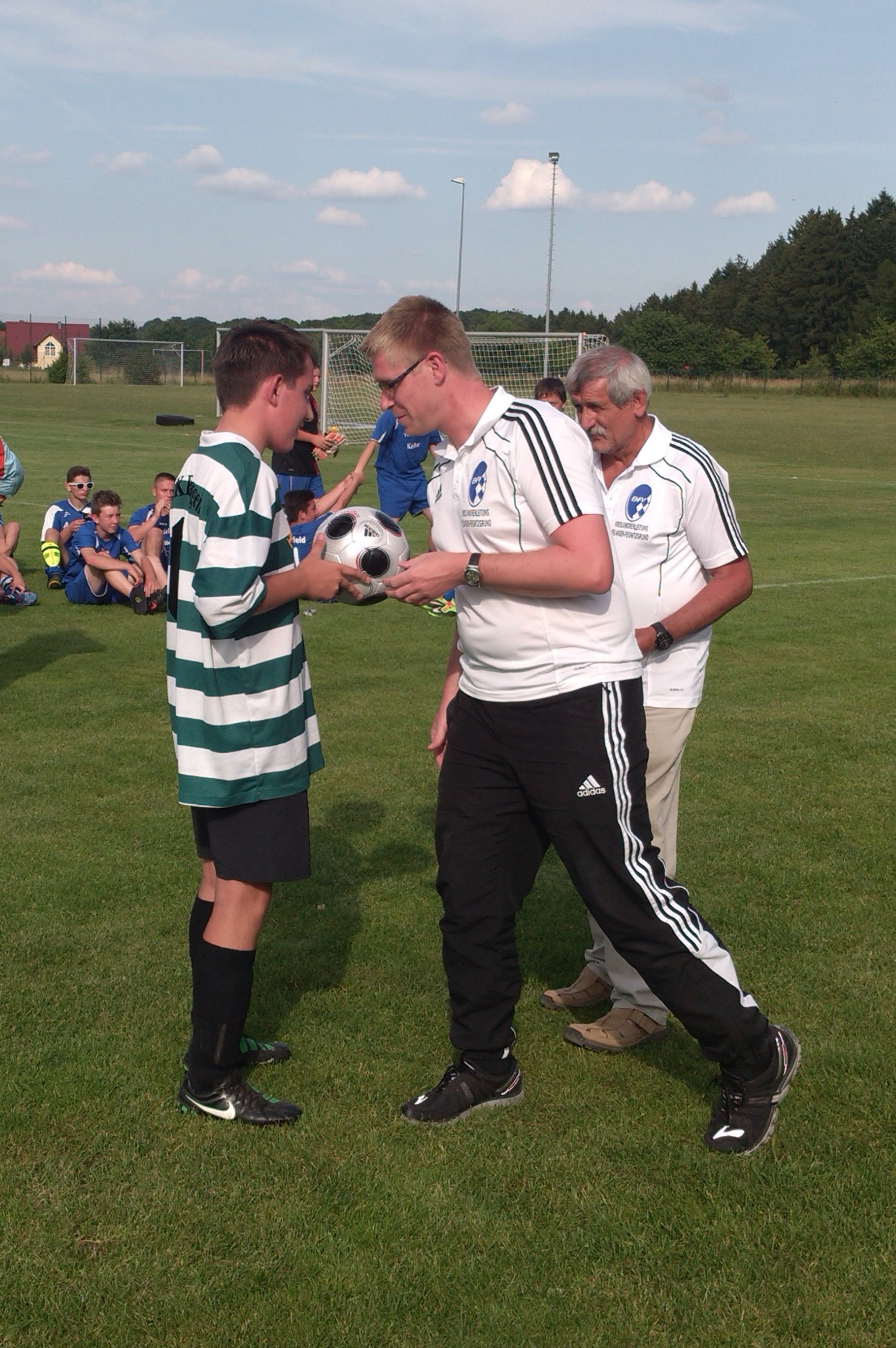 Hier unser Mannschaftkapitän Sebastian bei der Siegerehrung durch den Kreisspielleiter Tobias Körner: