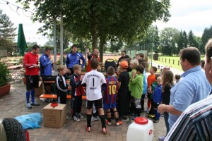 Vor lauter Bewirtung hätten wir fast die Verkostung der Kinder vergessen. Kurzerhand wurde der aufgetriebene DJK-Grill unter Feuer gesetzt und alles war wieder am Laufen. Dank Gebbi konnten dann auch alle Kinder mit den wohlschmeckenden Bratwürsten versorgt werden.