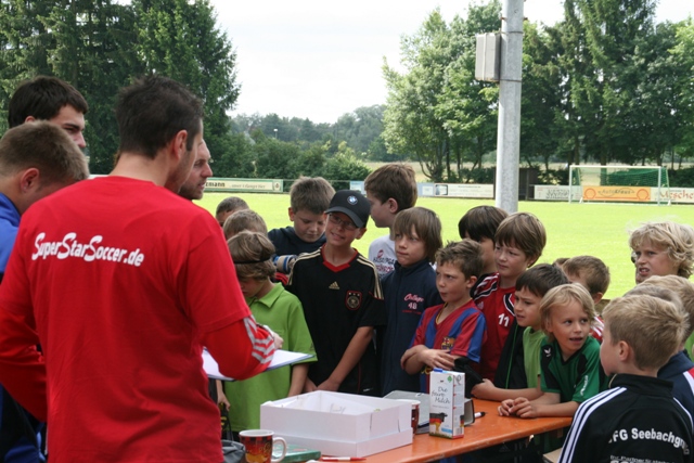 Über ein halbes Jahr akribische Vorbereitung gingen zu Ende und das 1. Trainingscamp durch die Bayreuther Firma SuperStarSoccer vom 20.06.11 bis 24.06.11 stand vor der Tür. Bei den Verantwortlichen war die Anspannung deutlich zu spüren! Wird alles klappen, was wir uns als Organisatoren auf die Fahne geschrieben haben? Deutlich vor dem vereinbarten Treffpunkt waren alle eingeteilten Personen an ihren Stationen einsatzbereit um den Trainern allen voran Campleiter Florian „Wursti“ Wurster einen gebührenden Empfang zu bereiten.