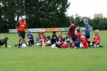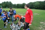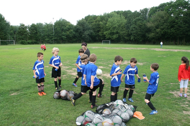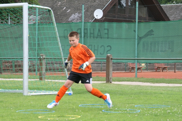 Im Camppreis ist eine komplette Trainingsausrüstung (Trikot, Hose, Stutzen, Trinkflasche und Ball) enthalten. Nach einer kurzen Ansprache und der Vorstellung der Trainer ging die Arbeit mit den Kinder auch schon los. Die Gruppeneinteilung wurde altersgerecht durchgeführt und so wurde am ersten Tag in 3 Gruppen zzgl. einer Torwartgruppe intensiv mit den Kids gearbeitet.