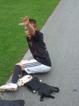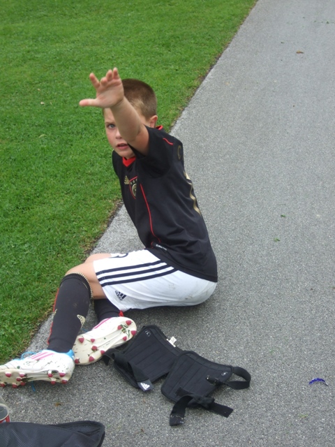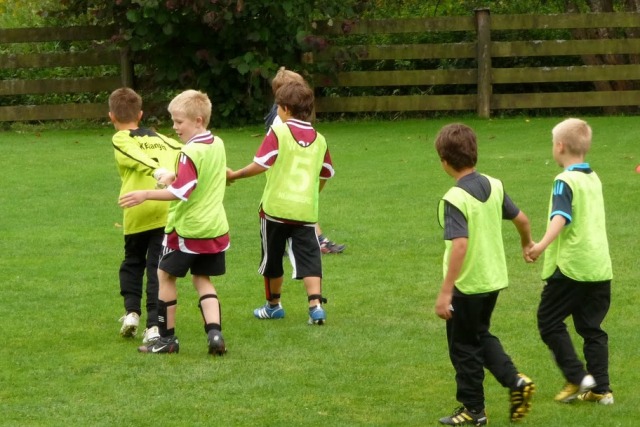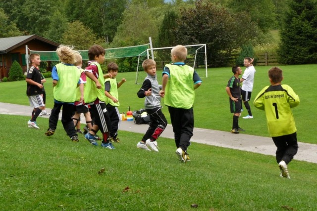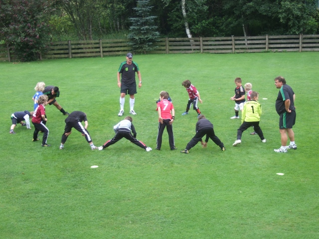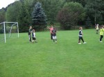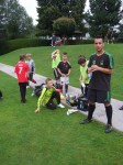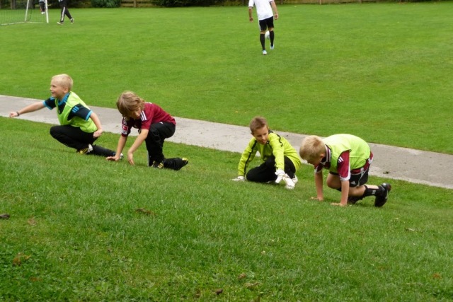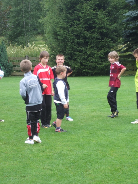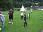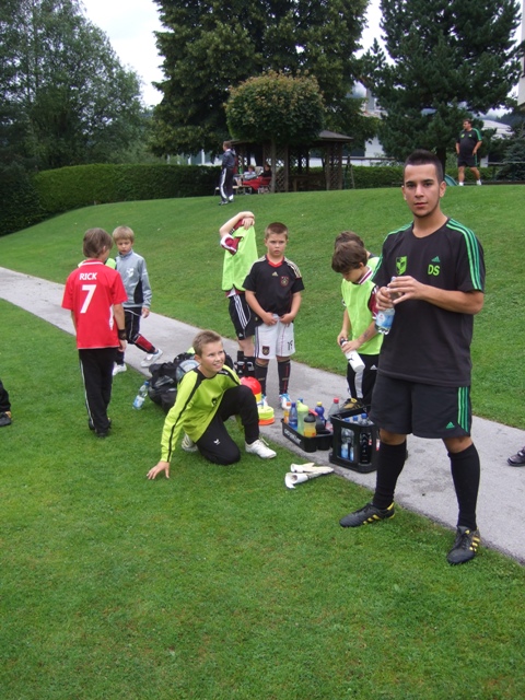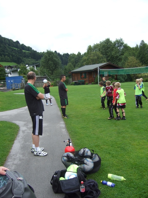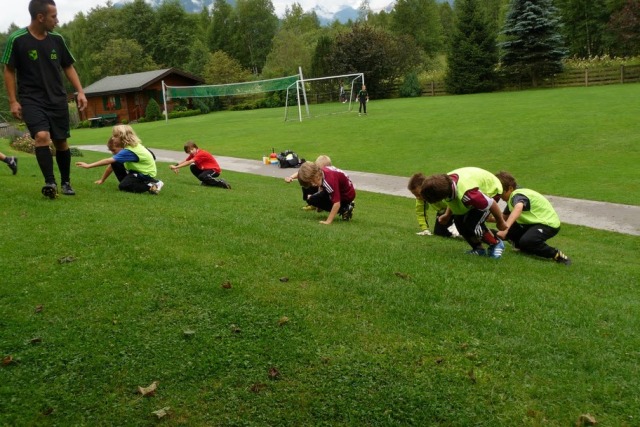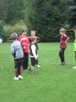 Nach der morgendlichen Stärkung waren nun auch die Trainer, welche durch Tobi unterstützt wurden, zum Training auf dem Platz. Nach ausgiebigem Aufwärmen durften sich die Kinder erstmals mit dem „Hügel des Grauens“ vertraut machen. Daran fanden sie unerklärlicherweise soviel Gefallen, dass sie gar nicht mehr aufhören wollten, diesen hinaufzusprinten. Einbremsen konnten wir die Kids eigentlich nur durch ein freies Spiel.