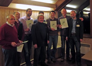 Geehrt wurden mit der silbernen Ehrennadel für 25 Jahre Mitgliedschaft Michael Weisel, mit der goldenen Ehrennadel für 40 Jahre Karin Berger-Graef, Gretl Bischoff, Otmar Liepold und Hans Philipp, mit der goldenen Ehrennadel mit Lorbeer für 60 Jahre Erich Nein. Als Ehrungen des DJK-Verbandes erhielten das DJK Ehrenzeichen in Bronze Friedrich Graef, Werner Rittmeier, Jörg Weber und Harald Weiß, das in Silber Gerhard Trapper und Uwe Wüstner.. Abgebildet sind der für 60-jährige Mitgliedschaft geehrte Erich Nein, umrahmt von den mit dem Ehrenzeichen des DJK-Verbandes Ausgezeichneten und dem 1. Vorsitzenden: (von links nach rechts) Friedrich Graef, Werner Rittmeier, Jörg Weber, Harald Weiß (verdeckt), Uwe Wüstner, Gerhard Trapper, Matthias Distler